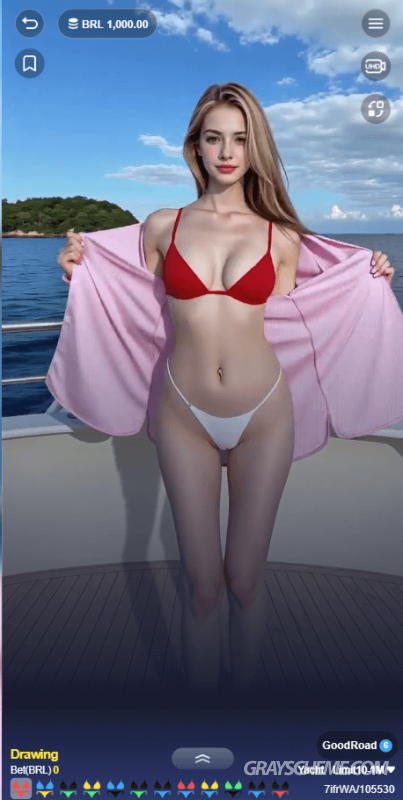 - "Раскрытие". После того как ставки приняты, AI-девушка снимает верхнюю одежду, демонстрируя купальник определенного цвета.
