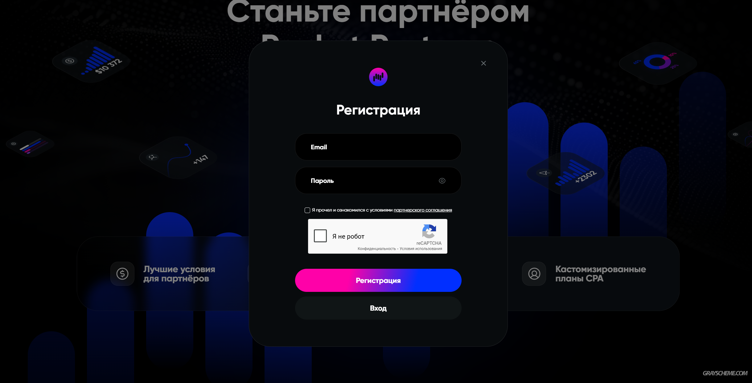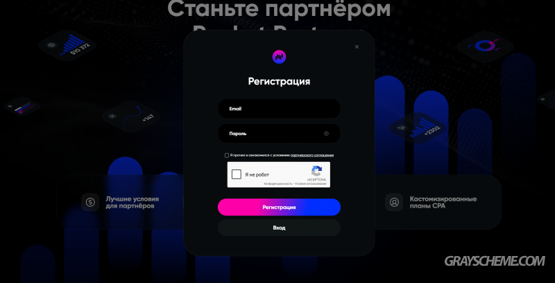 Для начала пройдите регистрацию, для старта вам ничего не потребуется и это один из самых главных плюсов партёhской программы, доступ может получить каждый, даже новичёк: просто введите почту и пароль для регистрации.