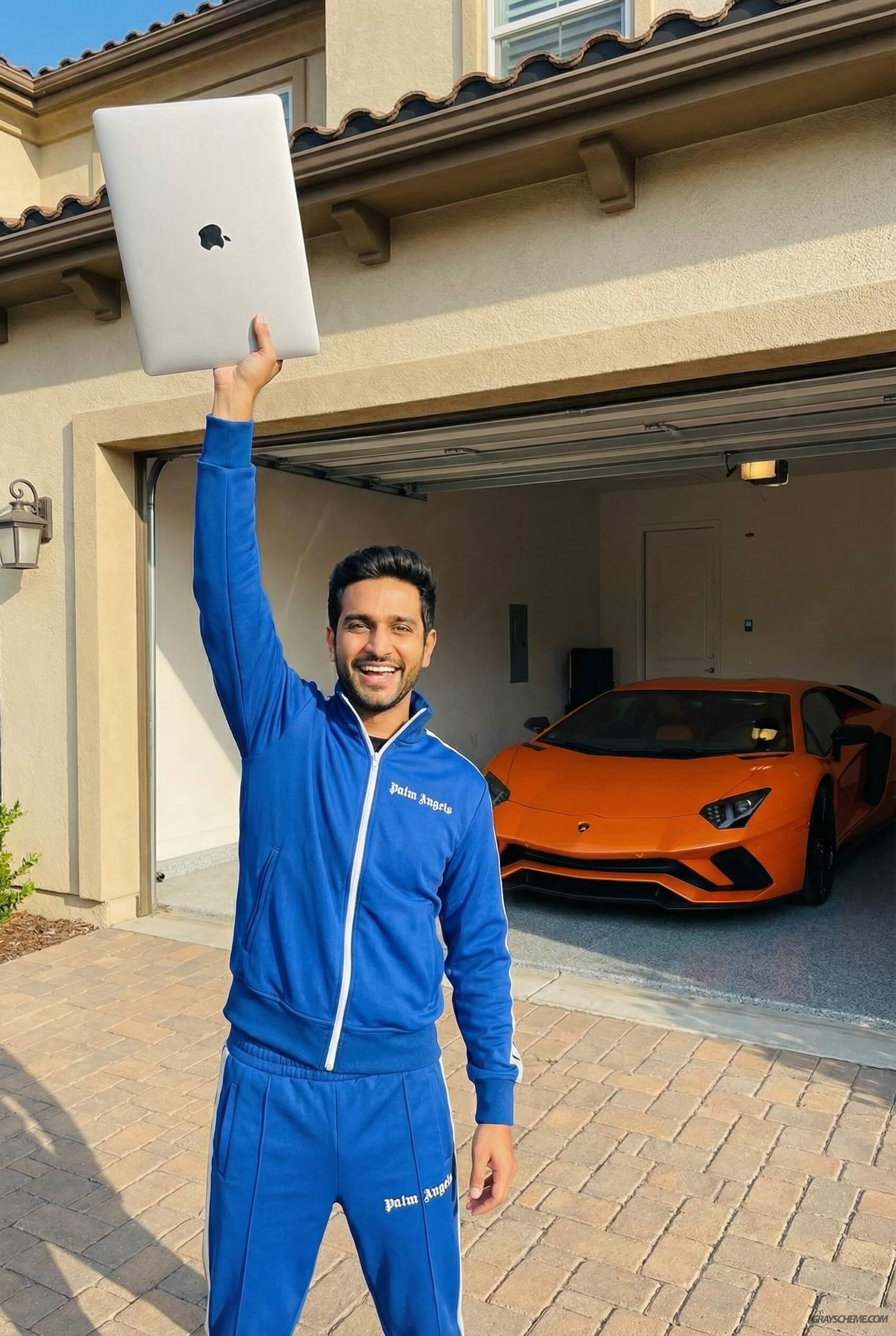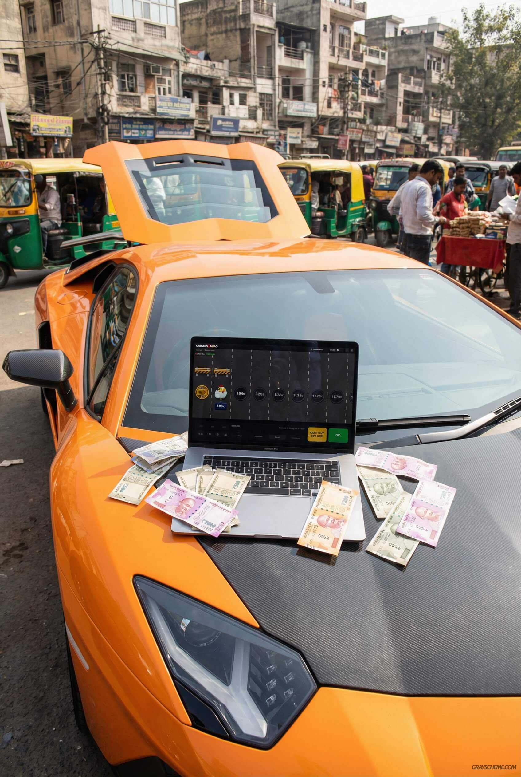 Мы решили добавить нашему блогеру банальное, но рабочее клише - ярко-оранжевую Lamborghini как любимую машину.