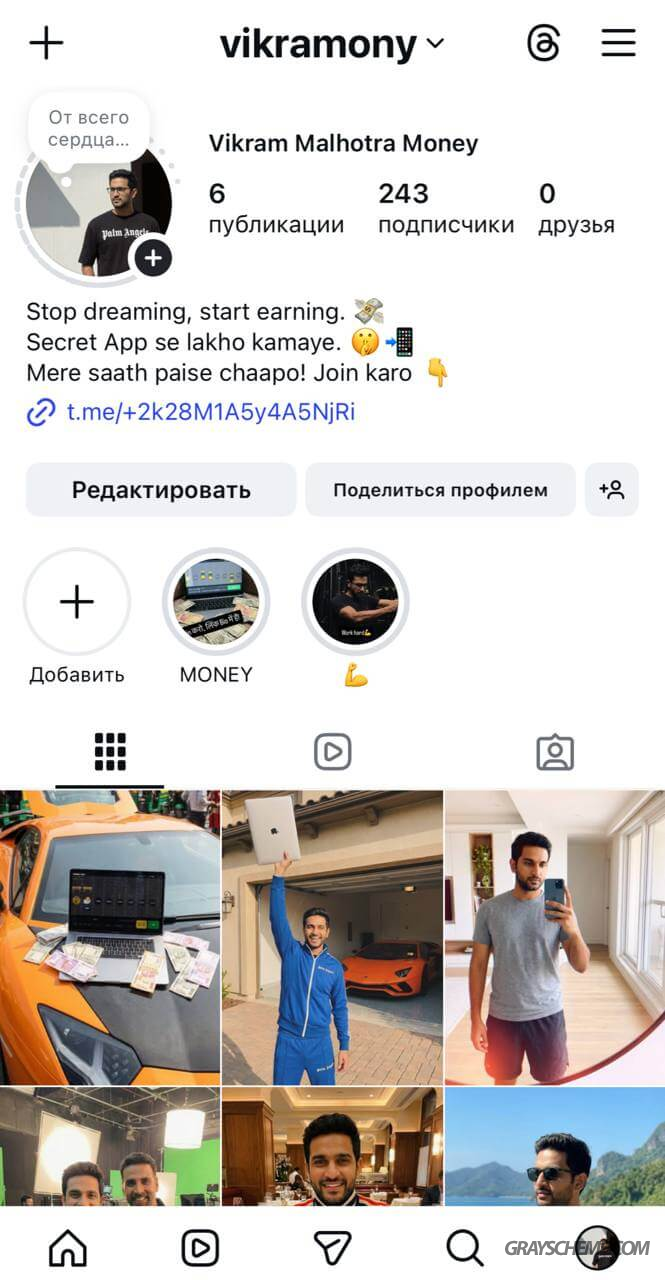 Устанавливаем аватар, прописываем имя (желательно популярное в Индии), создаём несколько папок «Актуальное» и самое важное — размещаем основную ссылку на Telegram-канал в описании профиля (bio).
