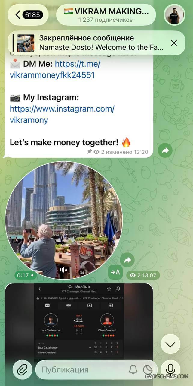 Именно так мы обнаружили канал другого «индуса», на которого также лили трафик в гемблинг-нише, и даже позаимствовали несколько кружков для своего канала.
