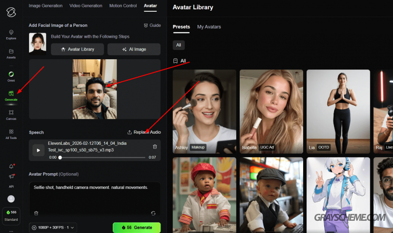 Идем в раздел Generate → вкладка Avatar.